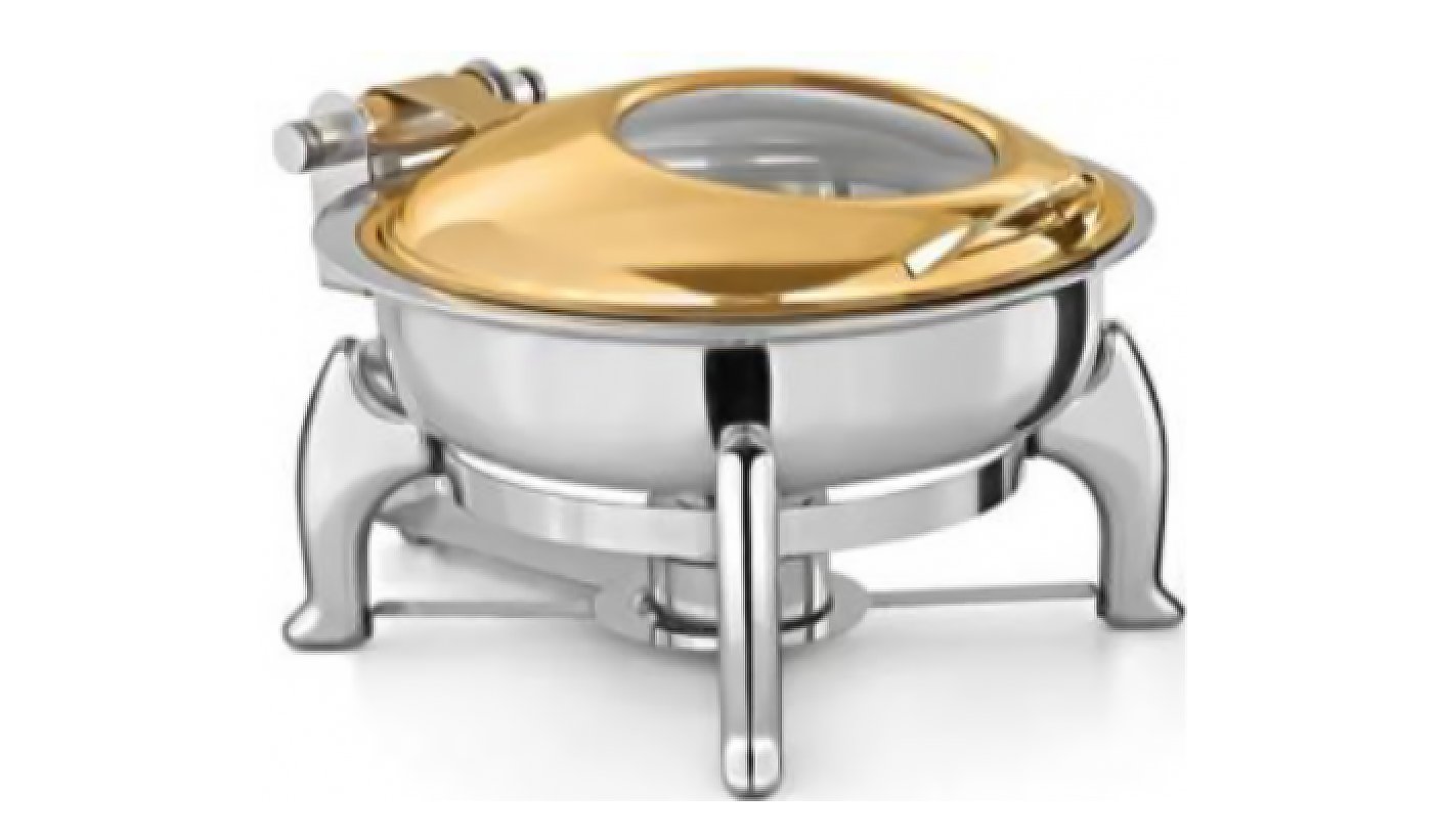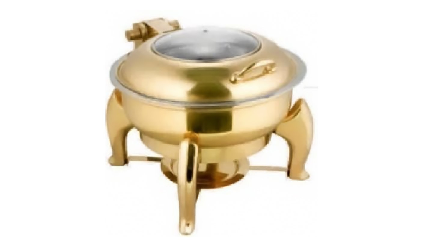 Full Gold Round Half Glass Lid Hydraulic Chafing dish 6 Litter | KI-GCF- 09