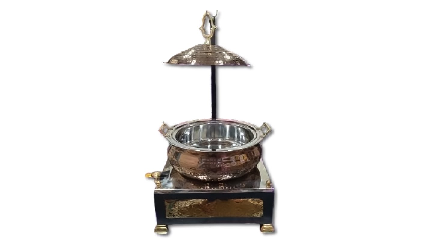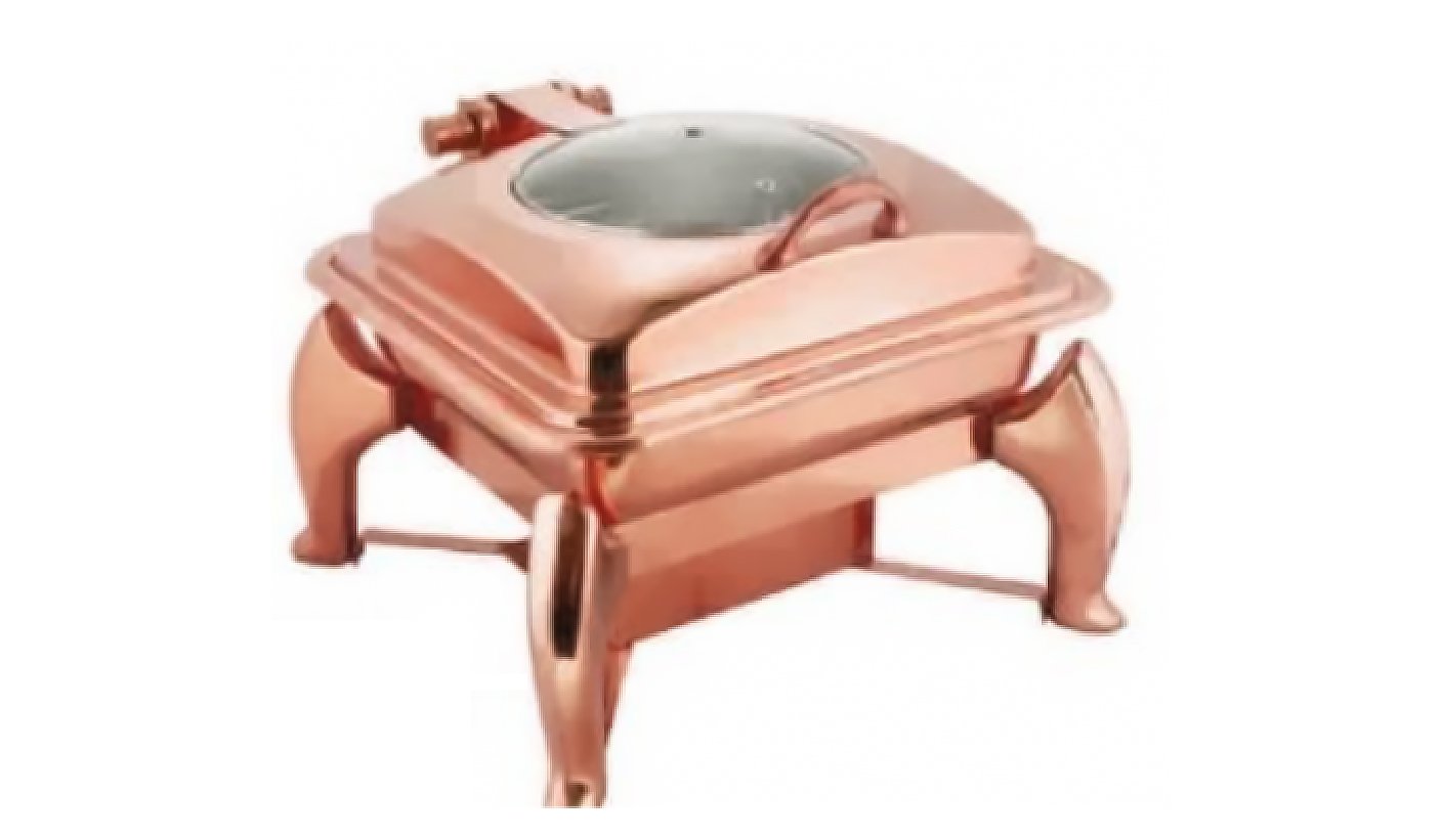 RoseGold Steel chafing dish with Hanging Lid And Square Chowki 6 Litter | KI-GCF- 33