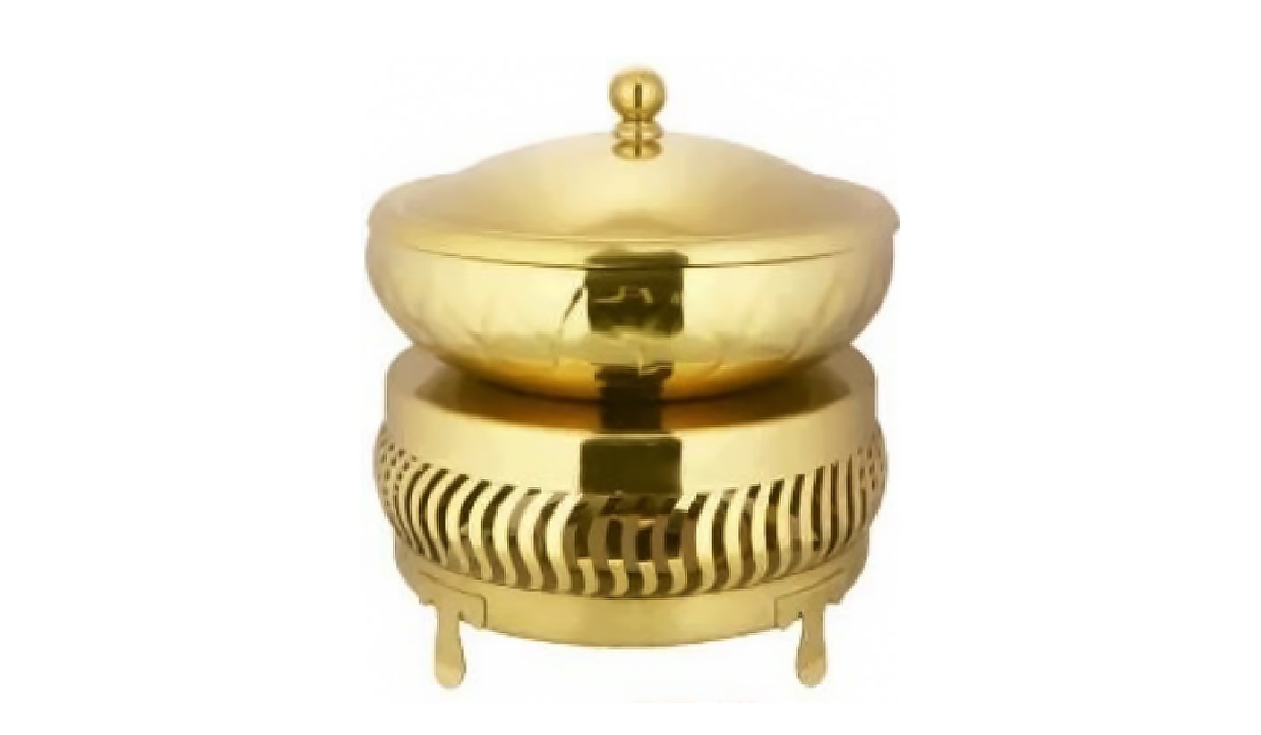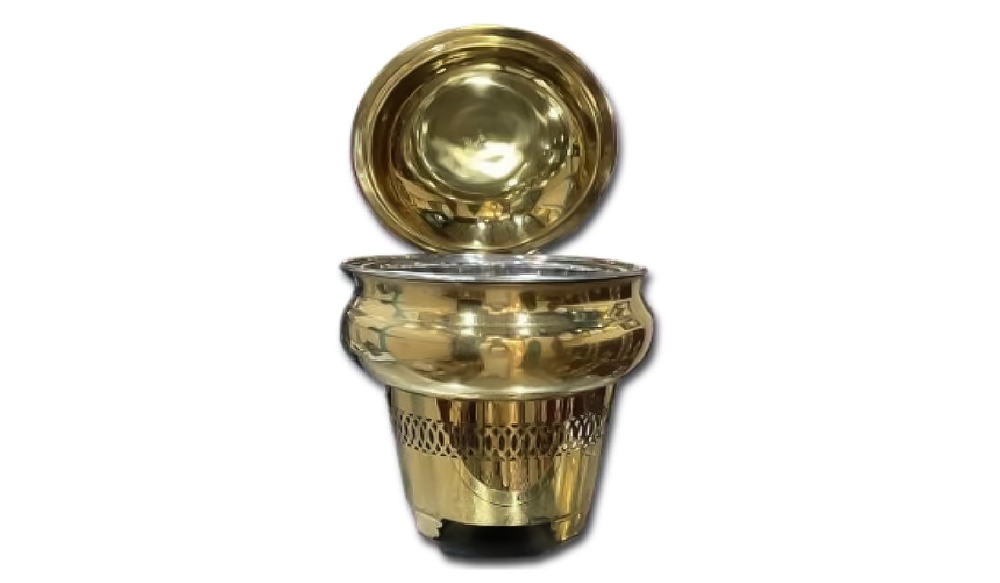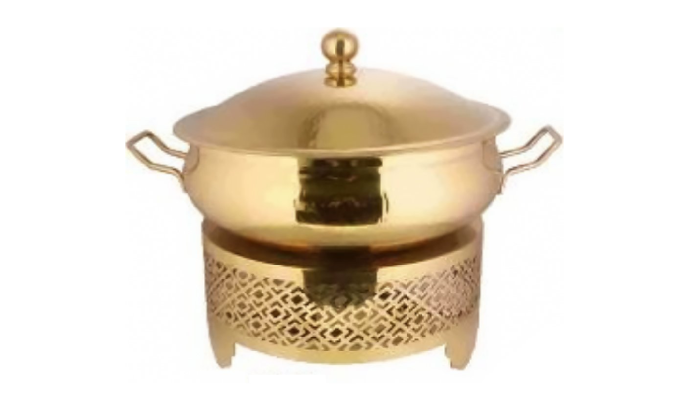 Gold Steel Belly shape chafing dish with Round Chowki 6 Litter | KI-GCF- 32