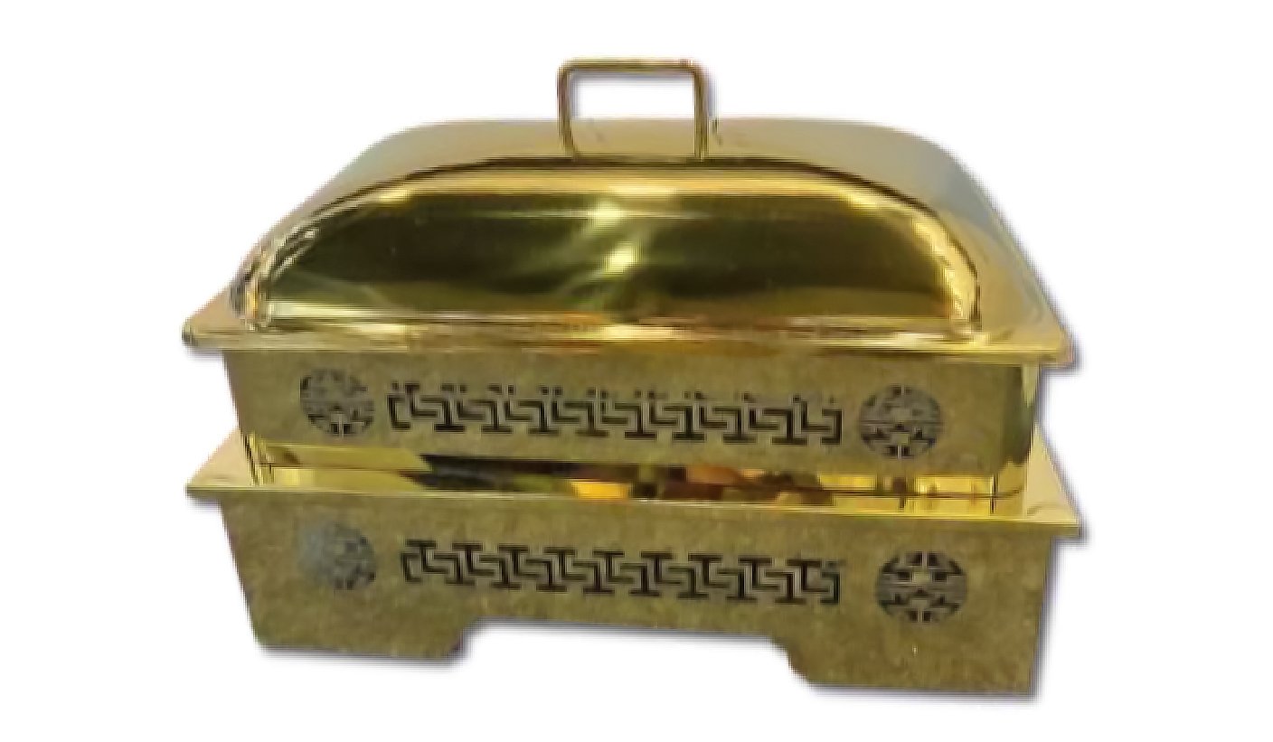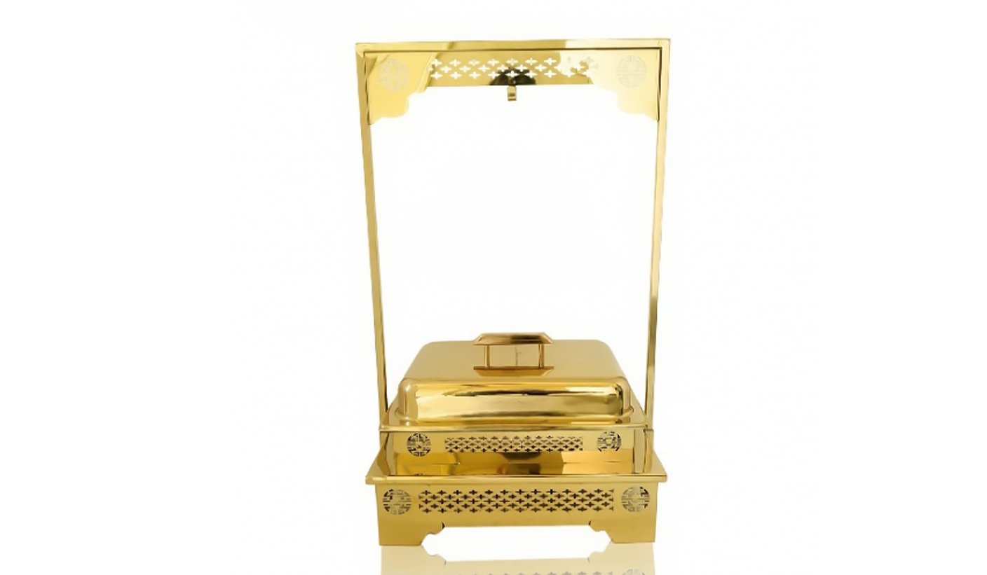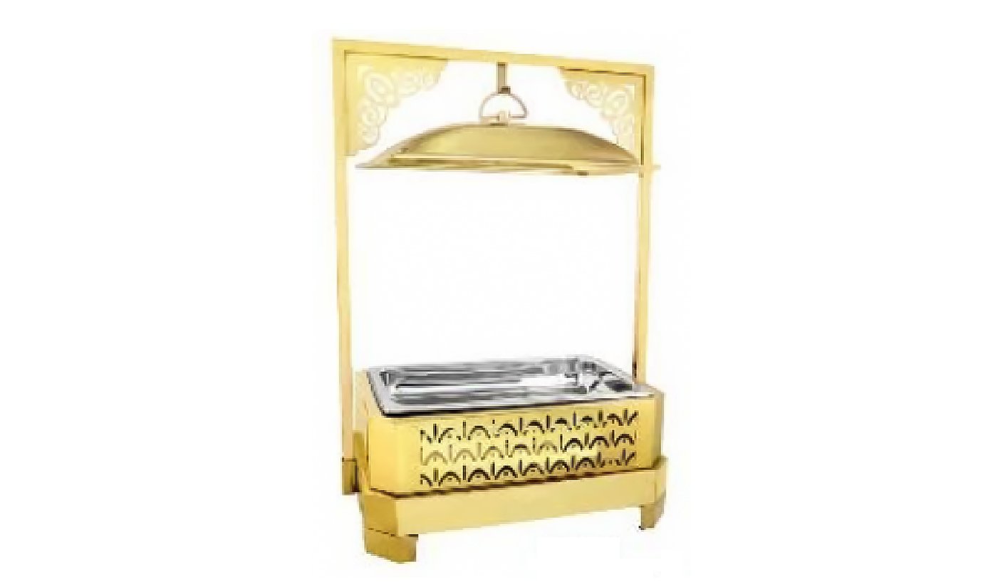 Gold Steel Rectangular Chafing dish with Hanging Lid and stand | KI-GCF- 59