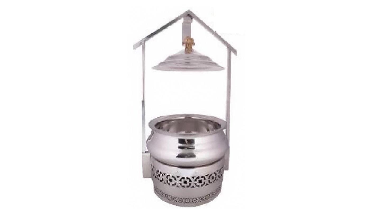 Silver Steel Round Chafing dish With Hanging Lid and Round Stand 8 Litter | KI-GCF- 20
