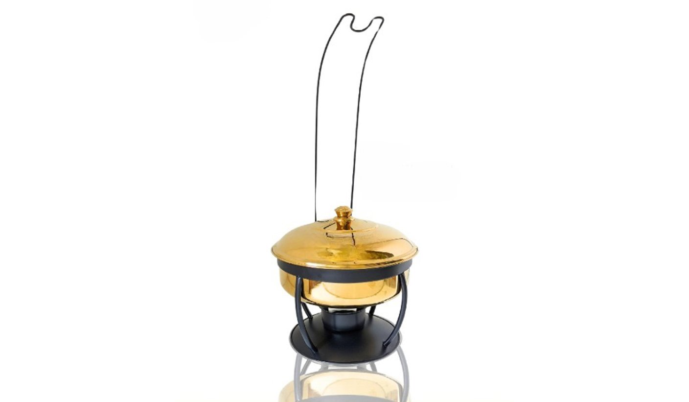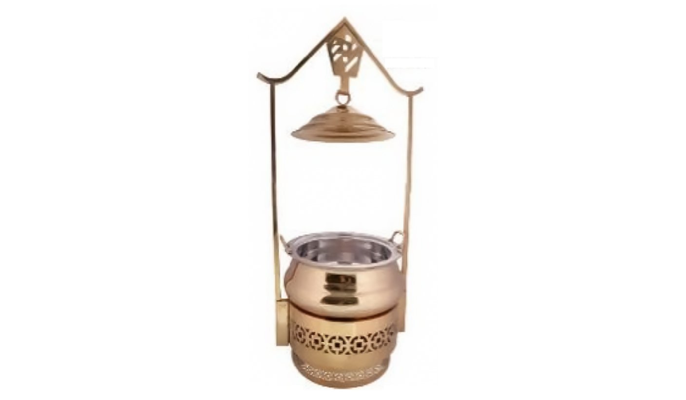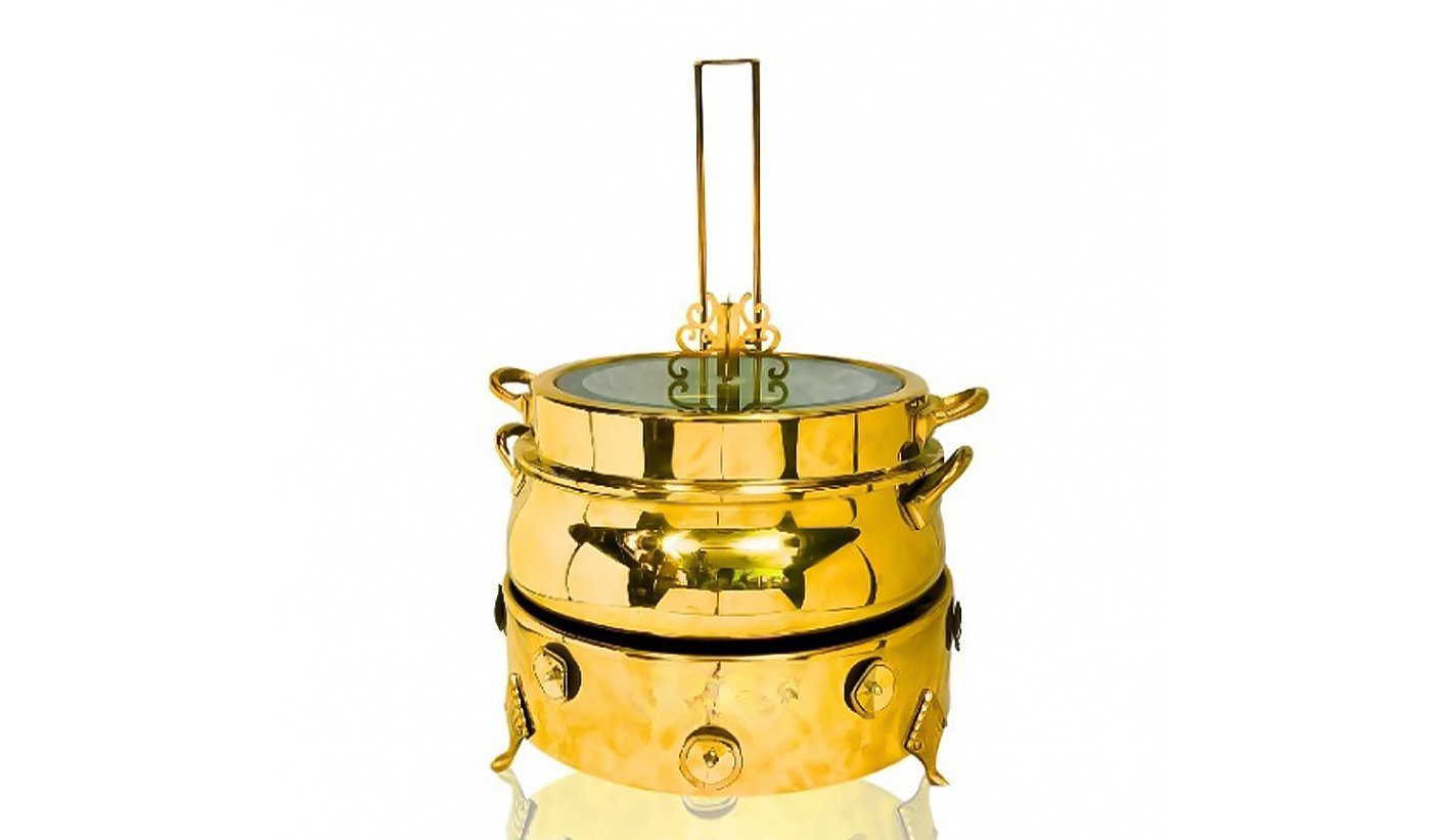 Antique Gold Steel Round Chafing dish with Hanging Lid and Legs | KI-GCF- 49