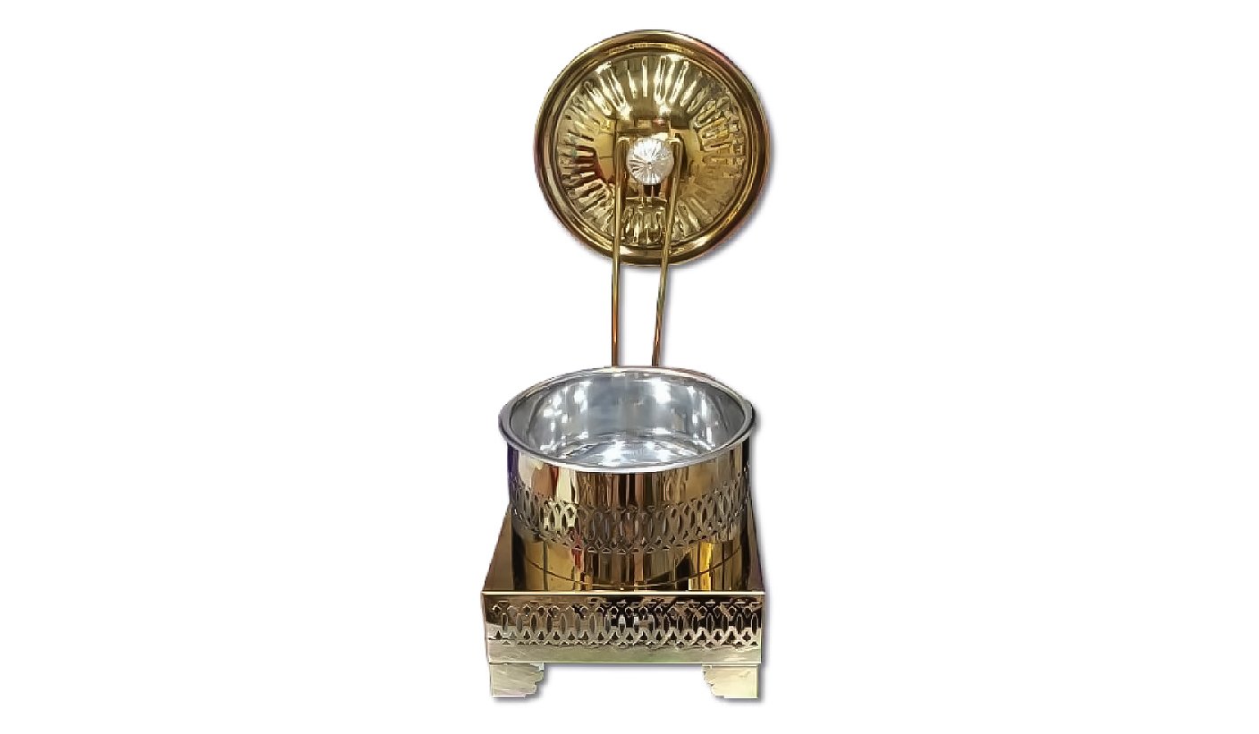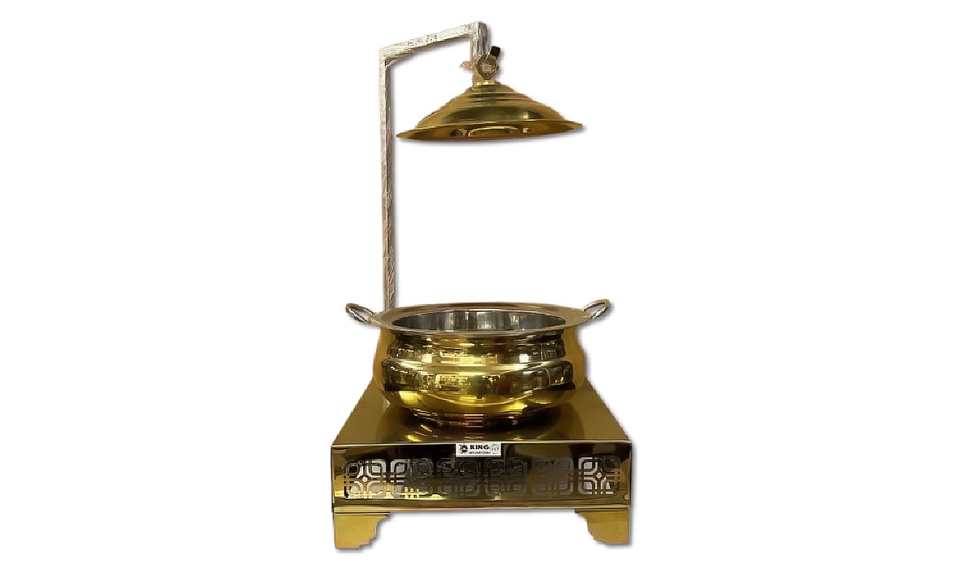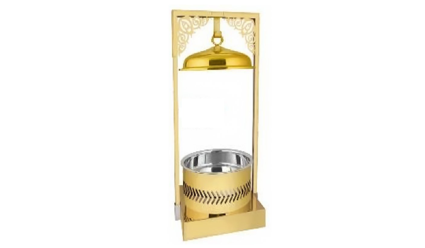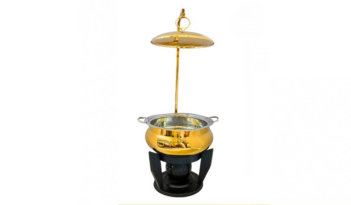 Gold Steel Round Chafing dish with Hanging Lid and Square stand | KI-GCF- 57