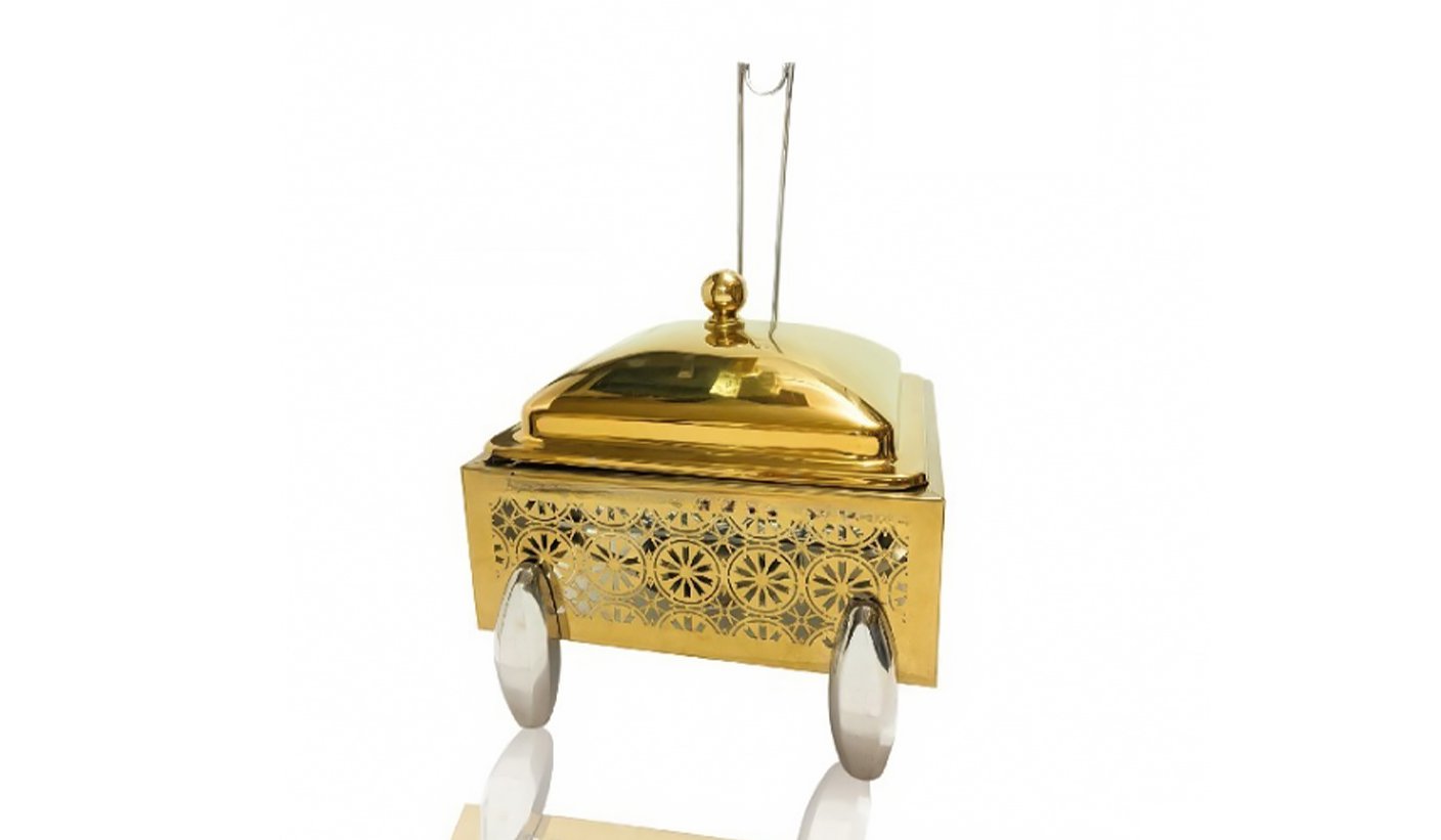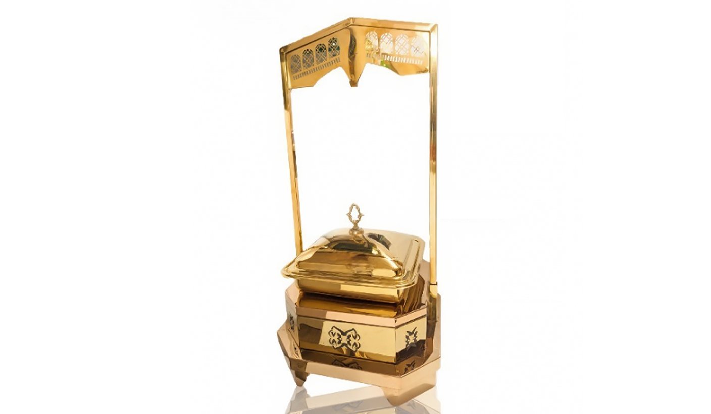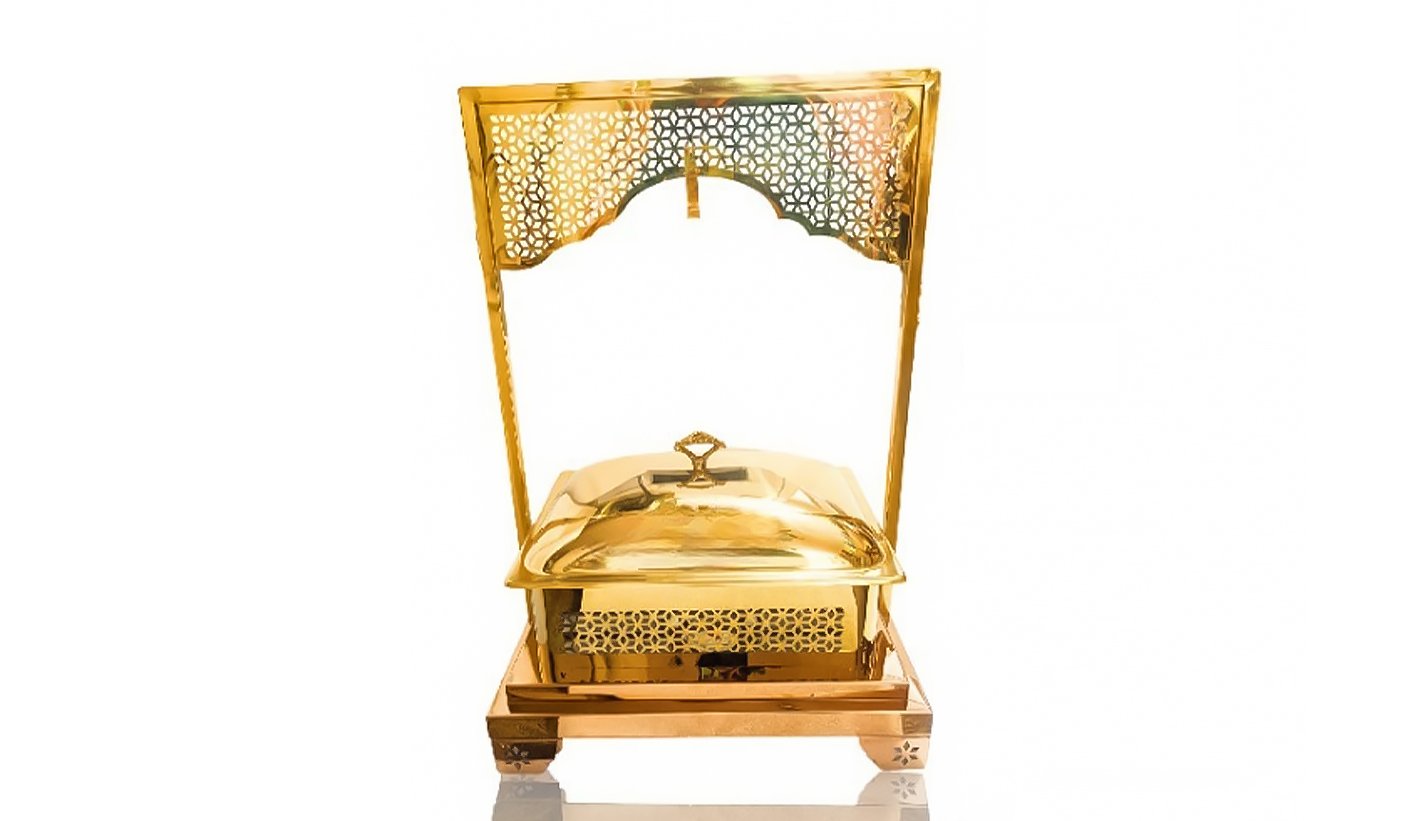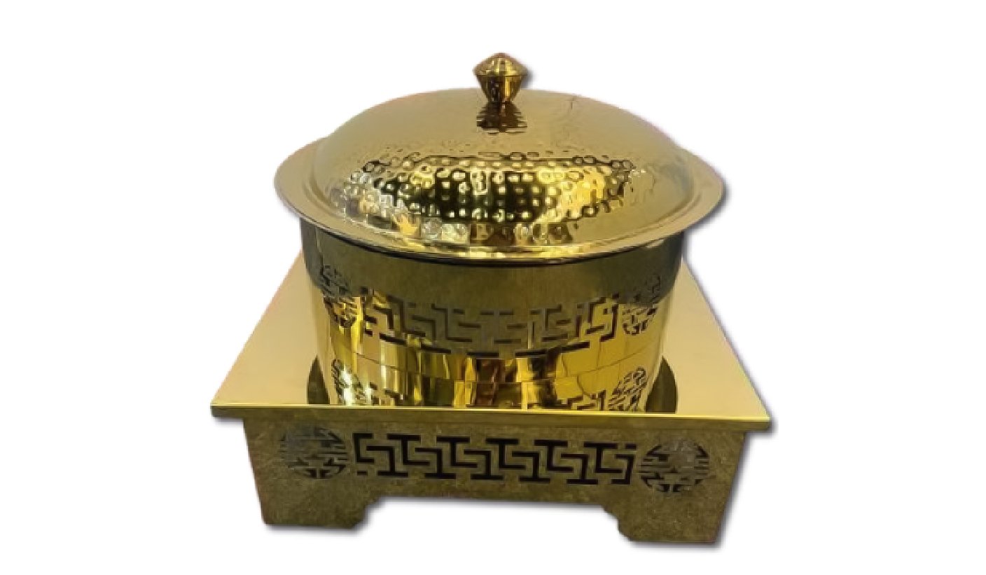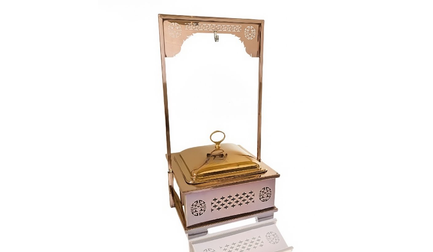 Gold Steel Round Chafing dish with Hanging Lid and Square stand | KI-GCF- 57