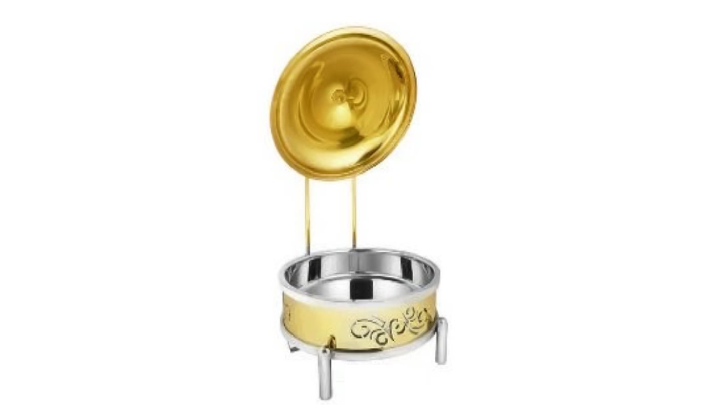Gold Steel Round Chafing dish with Lid and Stand | KI-GCF- 43