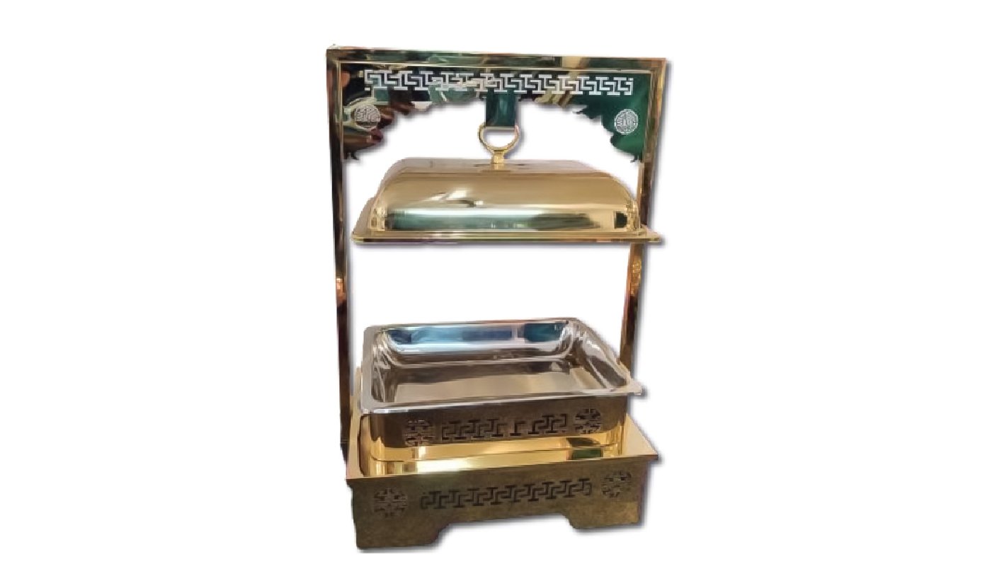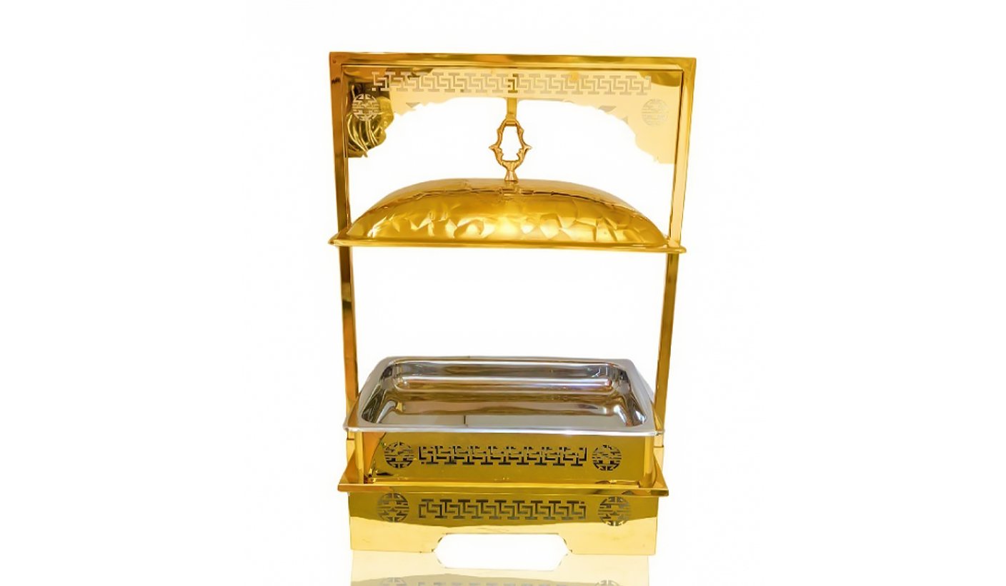 Gold Steel Rectangular Chafing dish with Hanging Lid and Double stand | KI-GCF- 60