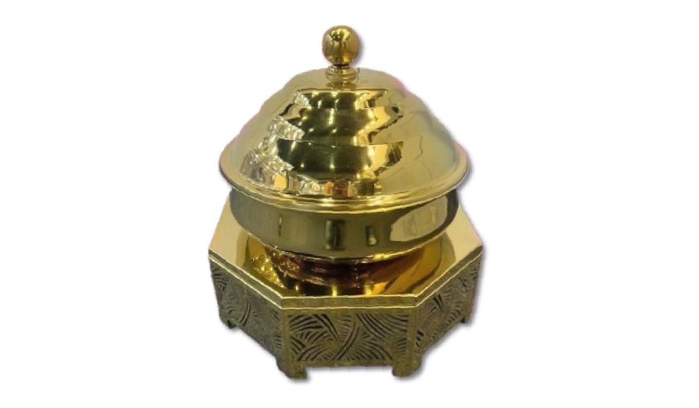 Gold Steel Round Chafing dish with Hanging Lid and Square Stand | KI-GCF- 52