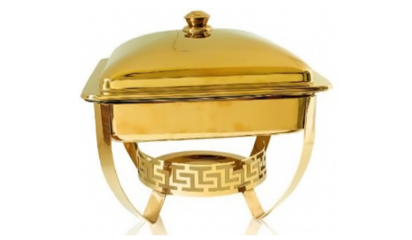 Gold Steel Round chafing dish with Square Base 6 Litter | KI-GCF- 35