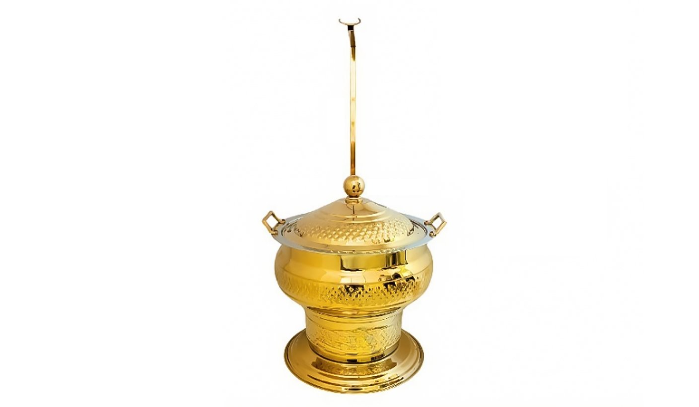 Antique Gold Steel Round Chafing dish With Hanging Lid 6 Litter | KI-GCF- 30